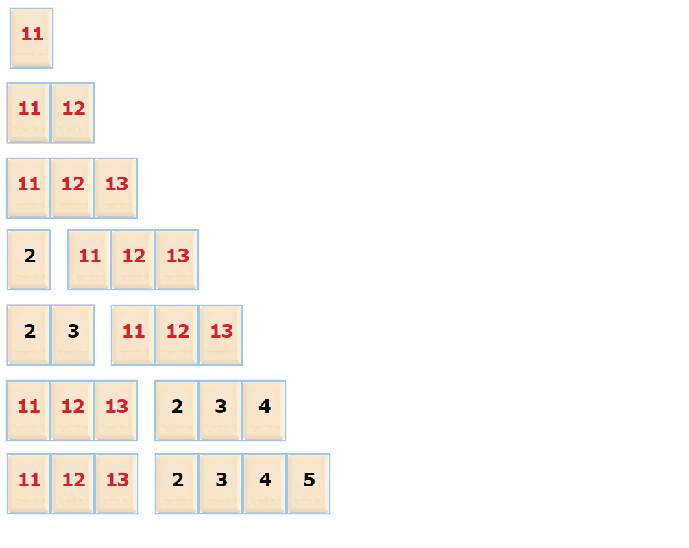 achteraanvolgens op de rode 11, 12 en 13 wordt geklikt, en daarna de zwarte