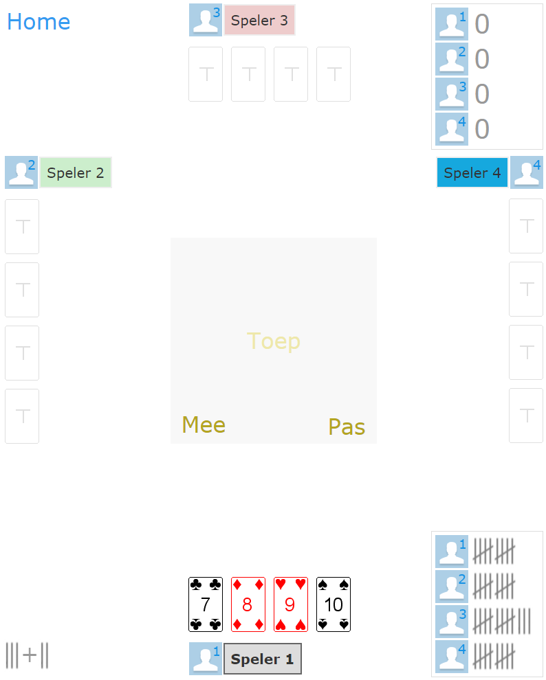 - Speelveld met 4 spelers